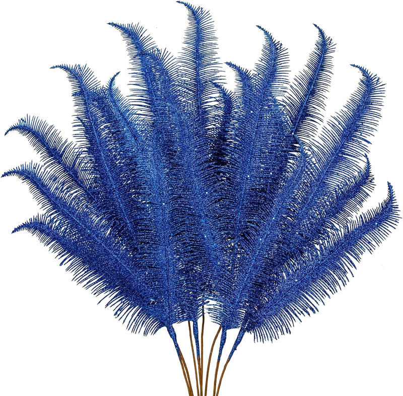 NEW Oairse 8 Pcs Christmas Tree Picks and Sprays Blue Glitter Christmas Picks 28" Christmas Glitter Feathers Leaves Stems for Christmas Tree Filler Branches Wreaths Centerpieces Holiday Decorations